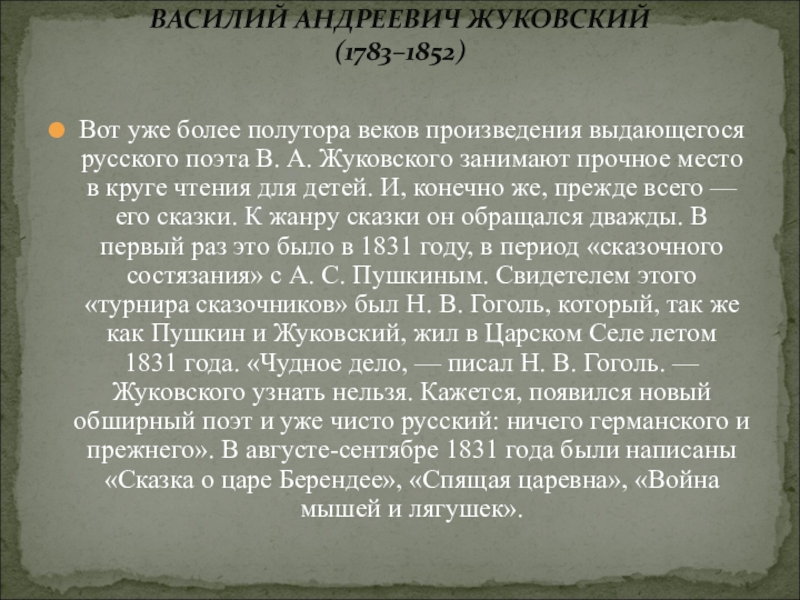 ВАСИЛИЙ АНДРЕЕВИЧ ЖУКОВСКИЙ