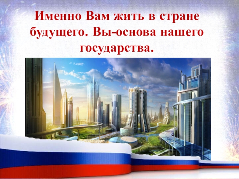 Слайд 27Именно Вам жить в стране будущего. Вы-основа нашего государства.