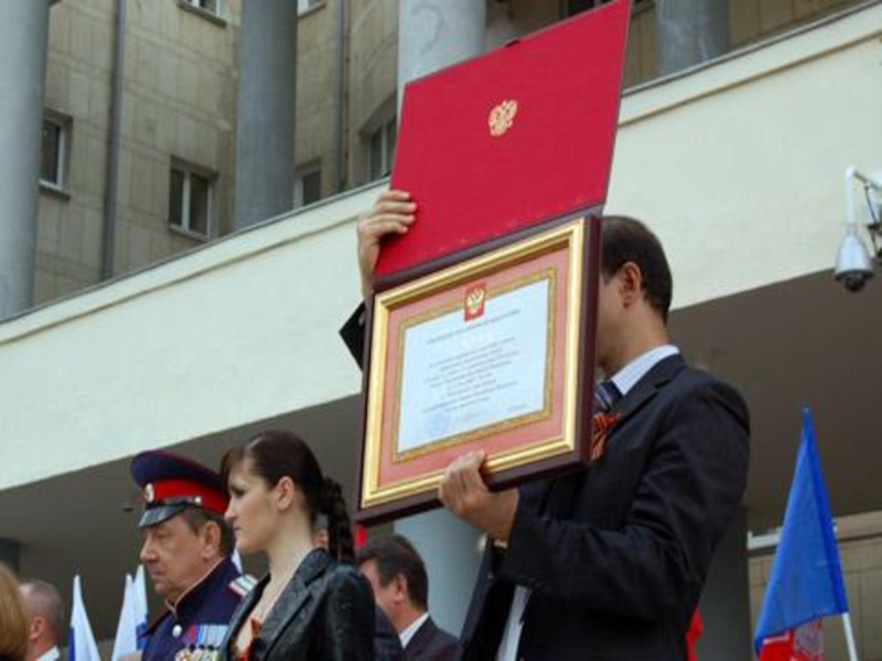 торжественная церемония вручения Мэру Ростова-на-Дону Михаилу Чернышеву грамоты Президента РФ о присвоении Ростову-на-Дону Почетного звания «Город воинской славы».