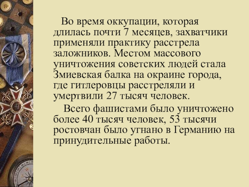 Слайд 26 Во время оккупации, которая длилась почти 7