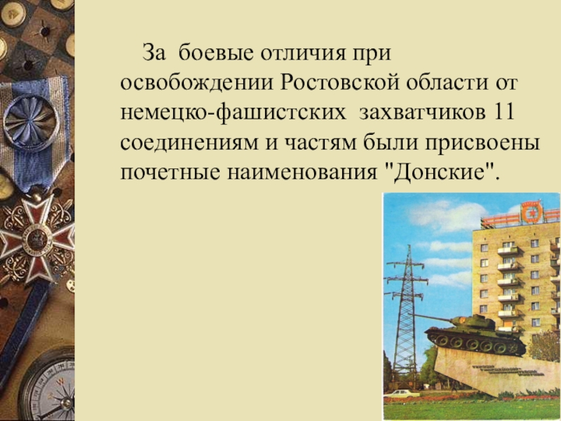 от немецко-фашистских захватчиков 11 соединениям и частям были присвоены почетные наименования "Донские".