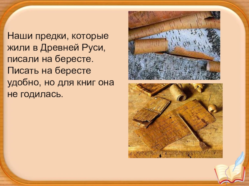 Наши предки, которые жили в Древней Руси, писали на бересте. Писать