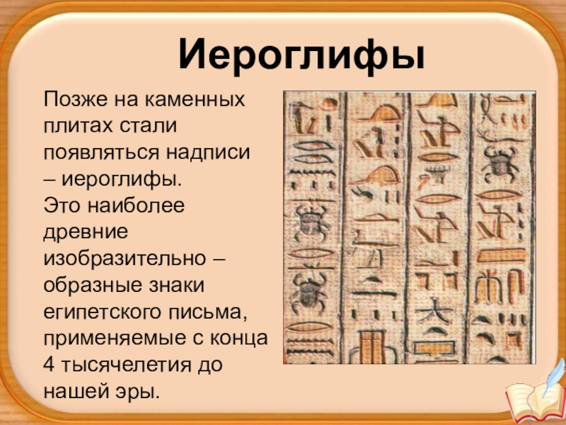 изобразительно – образные знаки египетского письма, применяемые с конца 4 тысячелетия до нашей эры.