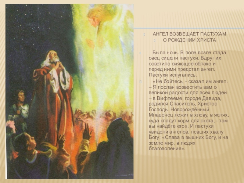 Слайд 5АНГЕЛ ВОЗВЕЩАЕТ ПАСТУХАМ