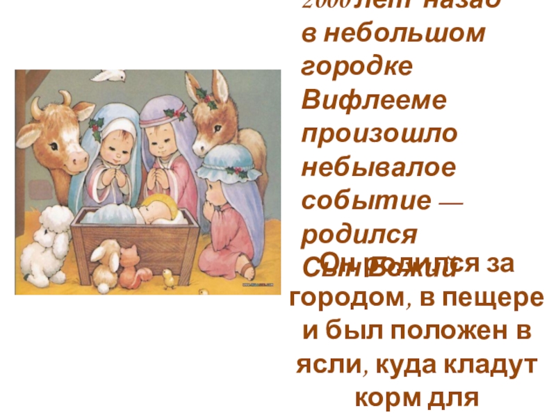Он родился за городом, в пещере и был положен в ясли, куда кладут корм для животных.