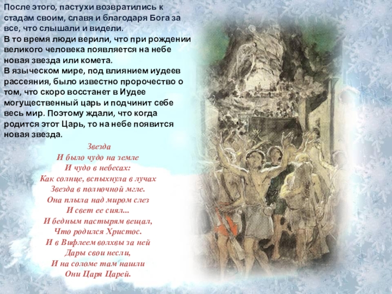 Слайд 10После этого, пастухи возвратились к стадам своим, славя и благодаря Бога