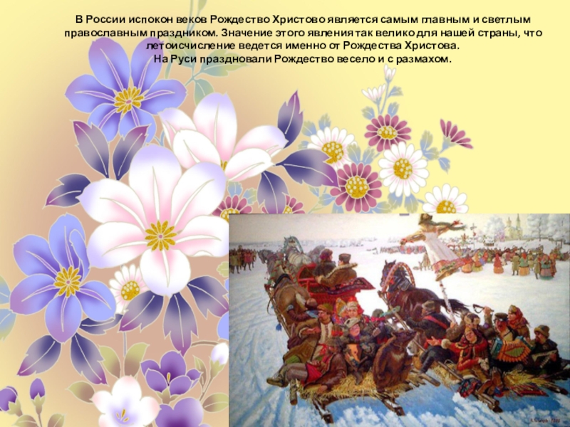 православным праздником. Значение этого явления так велико для нашей страны, что летоисчисление ведется именно от Рождества Христова.