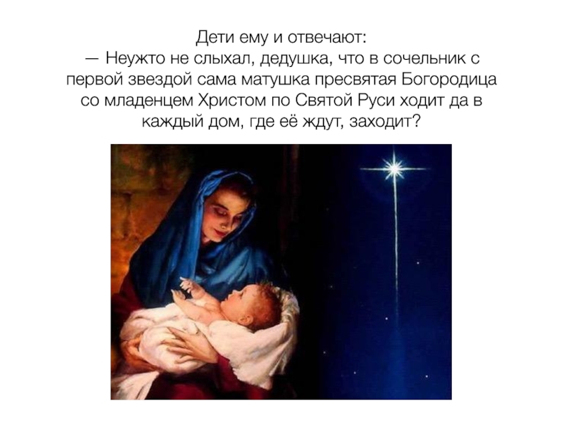 с первой звездой сама матушка пресвятая Богородица со младенцем Христом по Святой Руси ходит да в каждый дом, где её ждут, заходит?