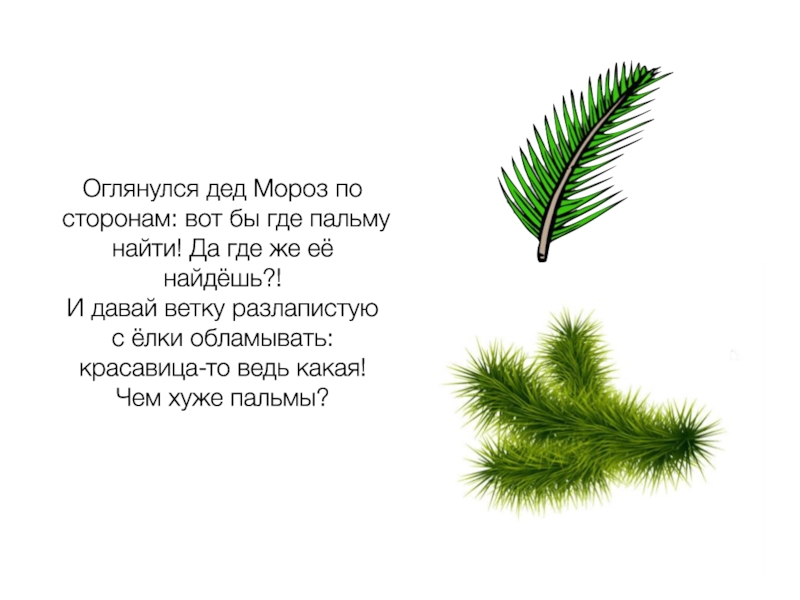 Слайд 15Оглянулся дед Мороз по сторонам: вот бы где пальму найти! Да