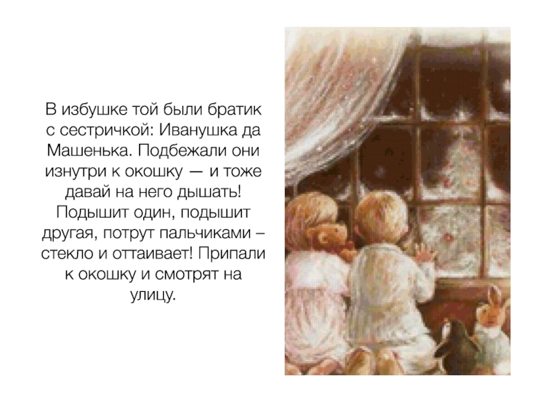 Слайд 8В избушке той были братик с сестричкой: Иванушка да Машенька. Подбежали