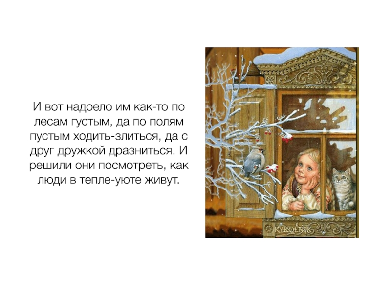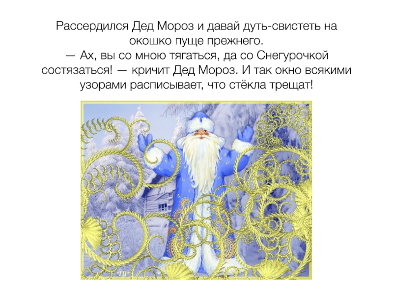 Слайд 9Рассердился Дед Мороз и давай дуть-свистеть на окошко пуще прежнего.