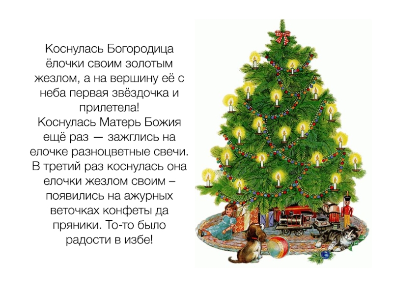 Слайд 18Коснулась Богородица ёлочки своим золотым жезлом, а на вершину её с