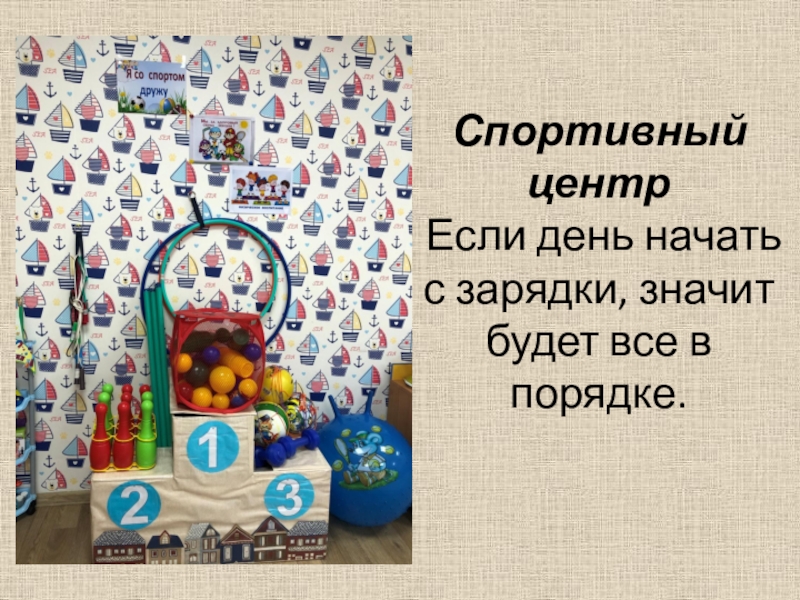 Слайд 15Спортивный центр Если день начать с зарядки, значит будет все в порядке.