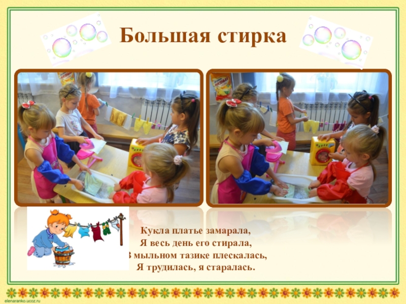 Продолжать учить детей помогать взрослым поддерживать порядок в группе: протирать игрушки, строительный материал и т. п.