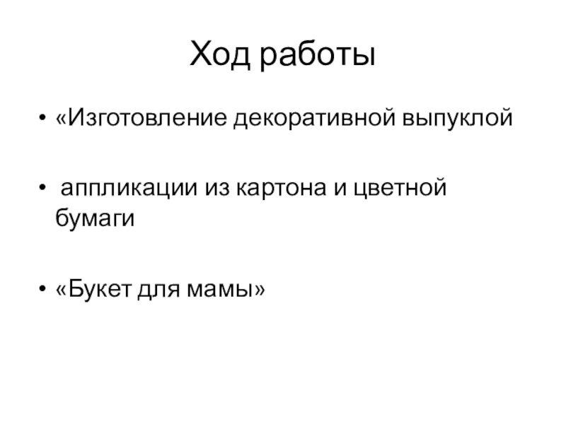 Ход работы«Изготовление декоративной выпуклой аппликации из картона и цветной бумаги «Букет для мамы»