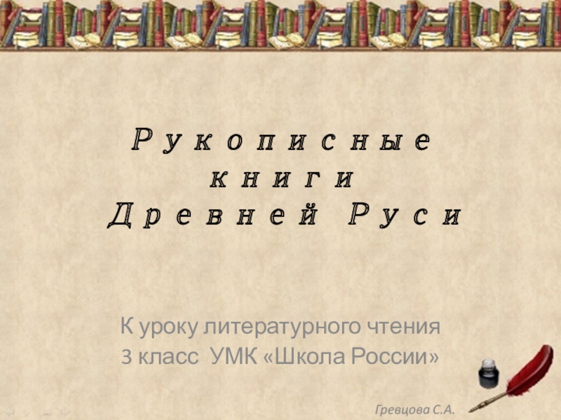 Рукописные книги  Древней РусиК уроку литературного чтения3 класс УМК «Школа России»