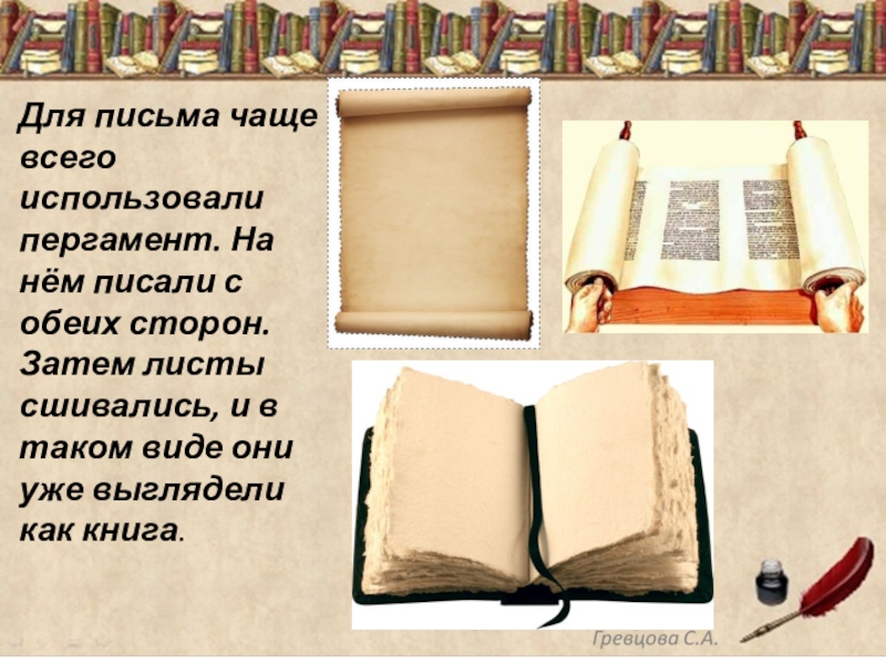 Слайд 5Для письма чаще всего использовали пергамент. На нём писали с обеих