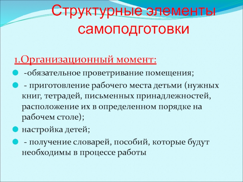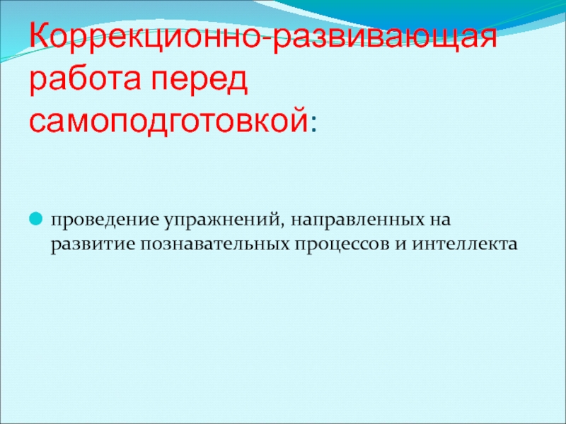 Слайд 9Коррекционно-развивающая работа перед самоподготовкой: