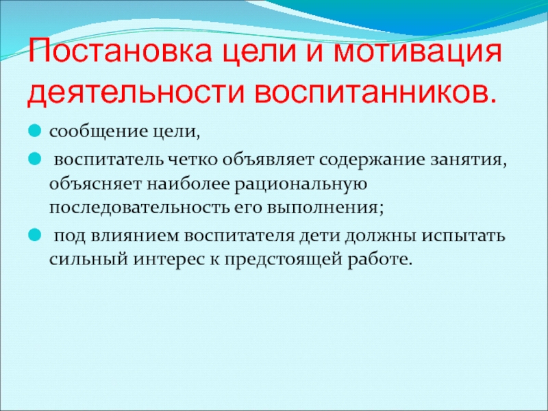 Слайд 10Постановка цели и мотивация деятельности воспитанников.