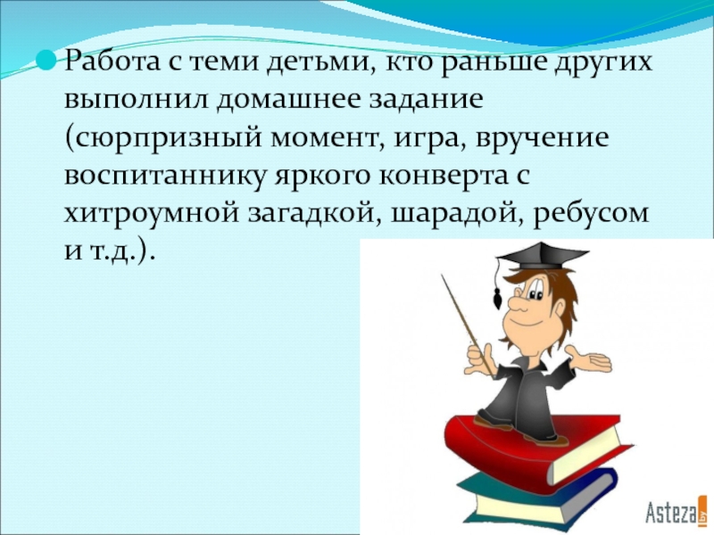 Слайд 18Работа с теми детьми, кто раньше других выполнил домашнее задание (сюрпризный