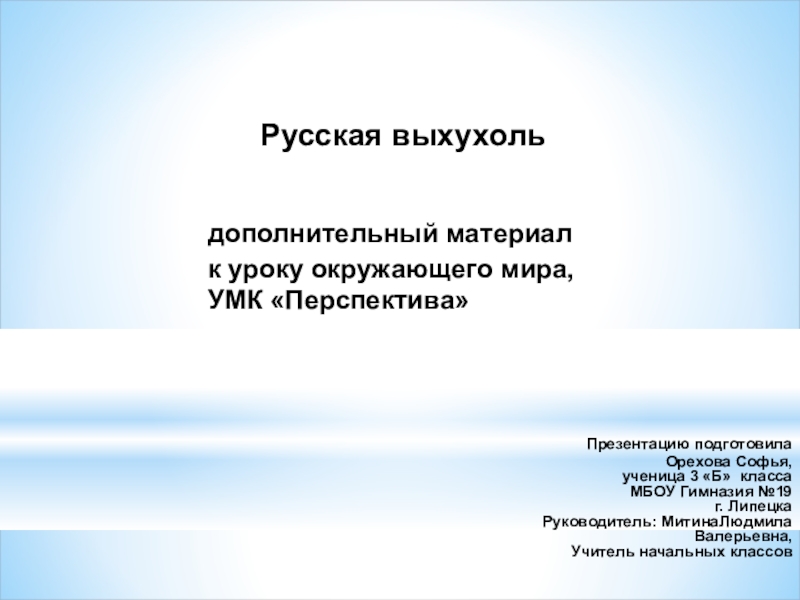 Руководитель: МитинаЛюдмила Валерьевна,