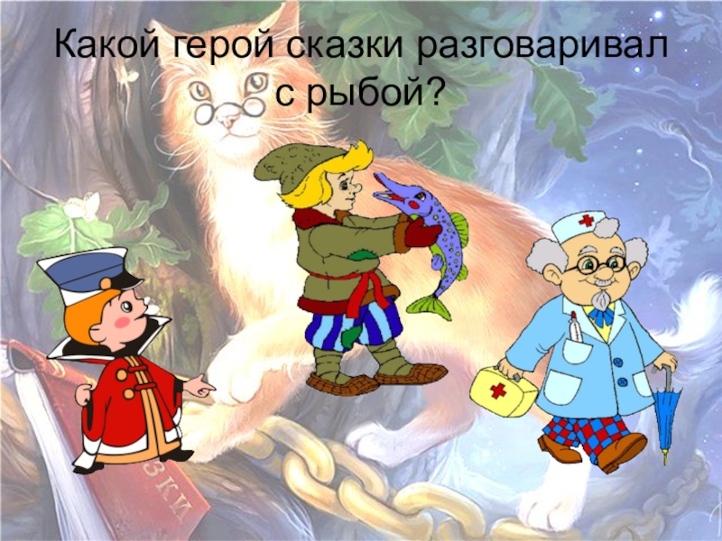 Слайд 14Какой герой сказки разговаривал с рыбой?