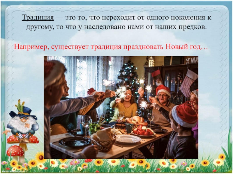Например, существует традиция праздновать Новый год…