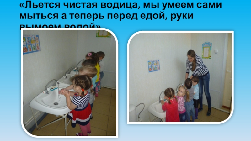 Слайд 8«Льется чистая водица, мы умеем сами мыться а теперь перед едой,