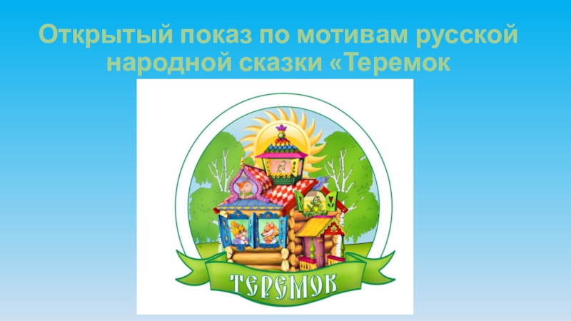 Слайд 16Открытый показ по мотивам русской народной сказки «Теремок