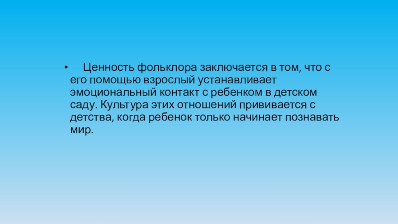 Ценность фольклора заключается в том, что с его помощью взрослый устанавливает эмоциональный контакт с