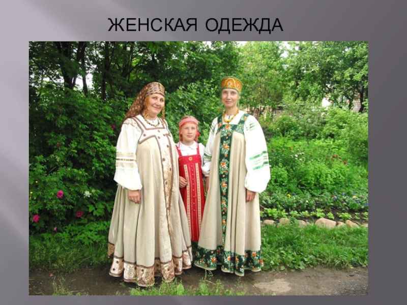 Слайд 3 Основой женского костюма была длинная рубаха. Рубаху украшали оторочкой