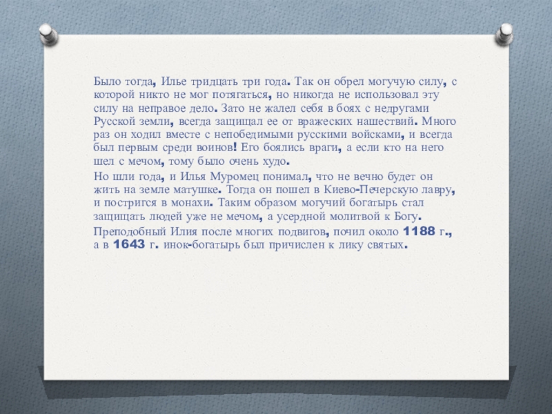 Слайд 3Было тогда, Илье тридцать три года. Так он обрел могучую силу,