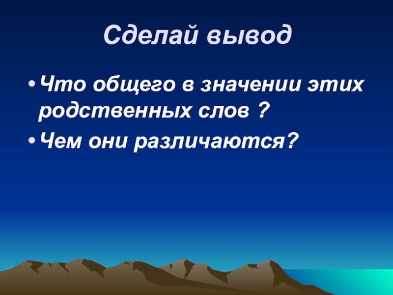 Сделай вывод Что общего в значении этих родственных слов ?Чем они различаются?