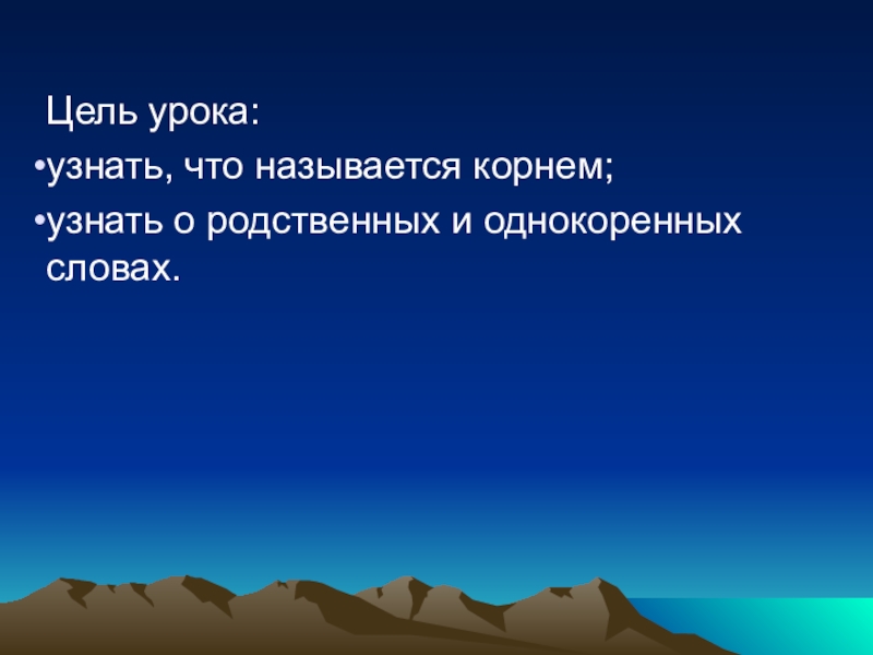 Цель урока: узнать, что называется корнем;узнать о родственных и однокоренных словах.