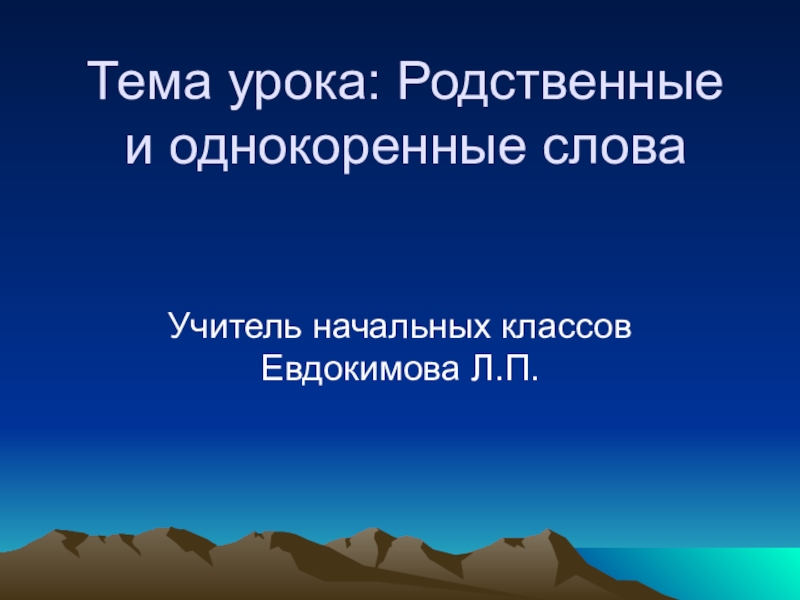 Тема урока: Родственные и однокоренные слова Учитель начальных классов Евдокимова Л.П.