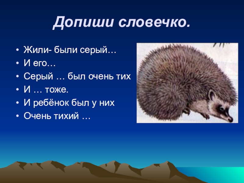 Допиши словечко. Жили- были серый…И его…Серый … был очень тих      И …