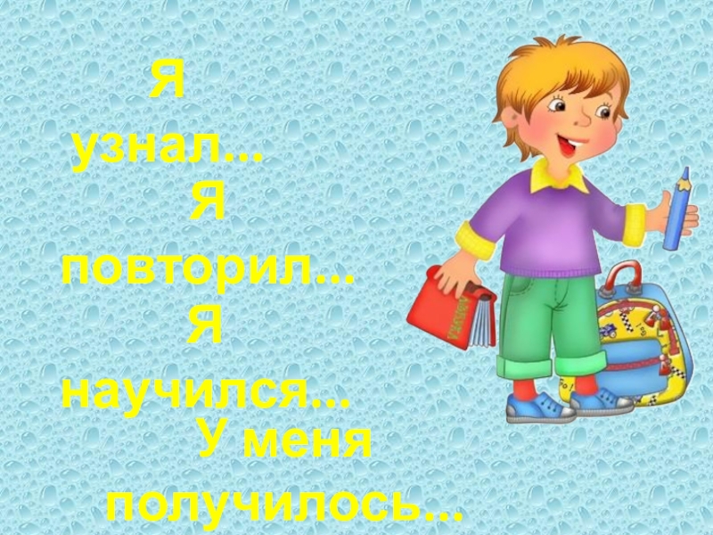 Я узнал...Я повторил...Я научился...У меня получилось...