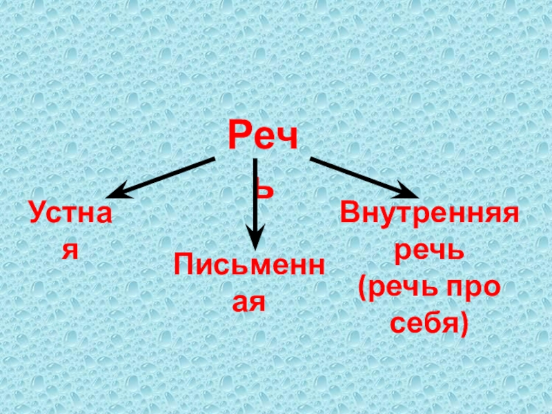 РечьУстнаяПисьменнаяВнутренняя речь(речь про себя)