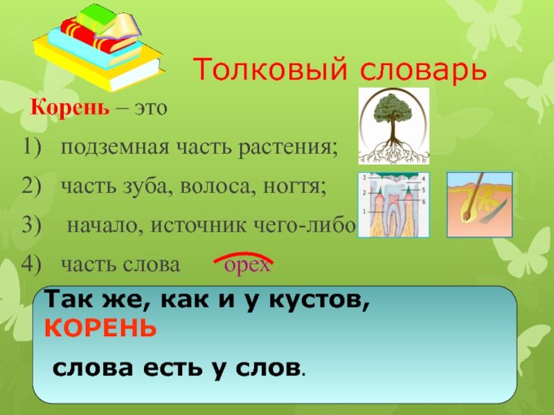 Так же, как и у кустов, КОРЕНЬ