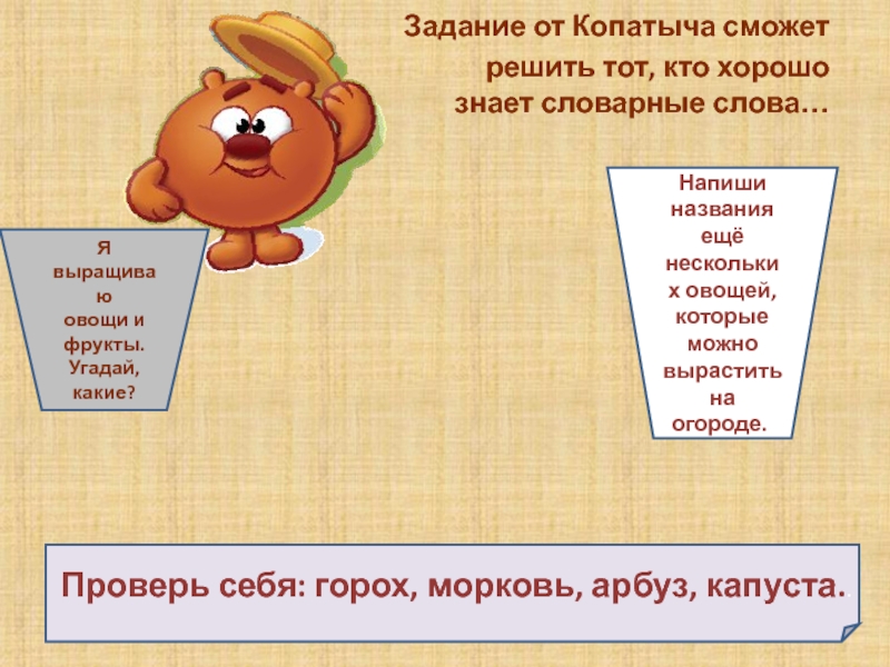 Проверь себя: горох, морковь, арбуз, капуста..