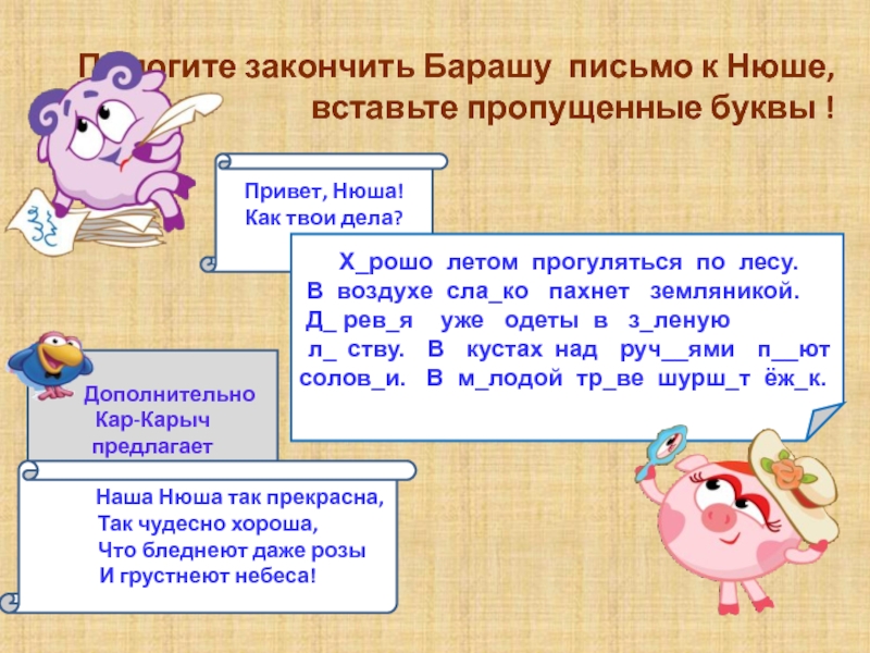 Кар-Карыч предлагает закончить стихотворение к Нюше вместе с ним: