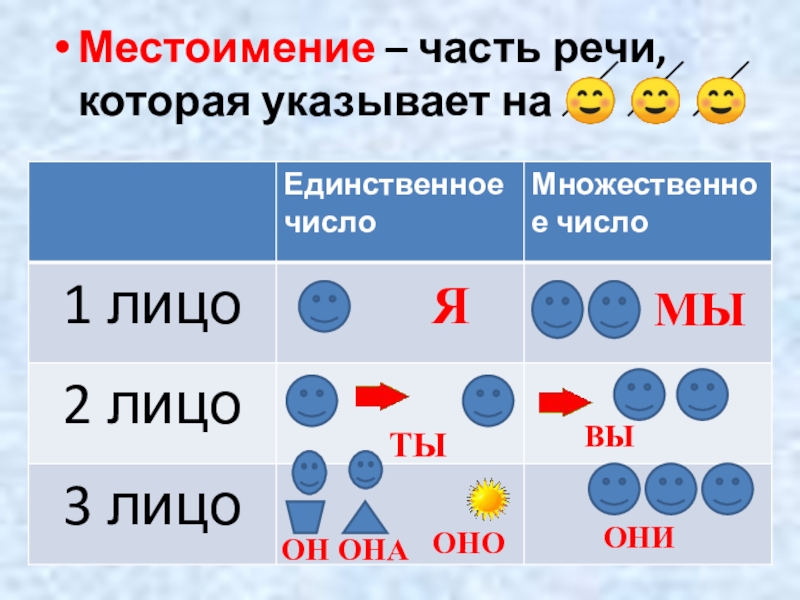 Слайд 2Местоимение – часть речи, которая указывает на ☺ ☺ ☺