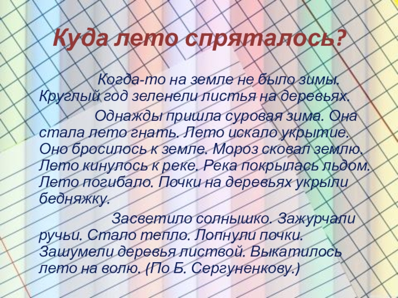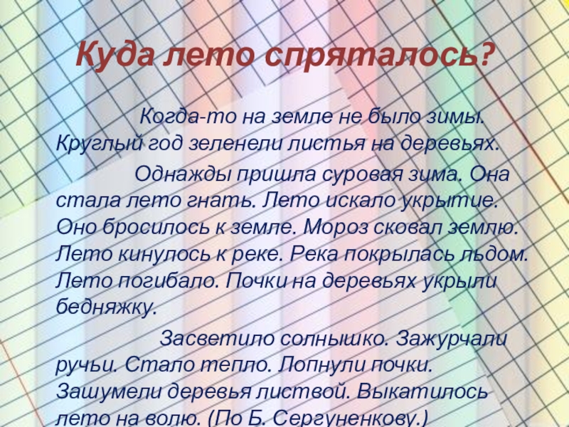 Презентация, доклад на тему Русский язык изложение Куда лето спряталось
