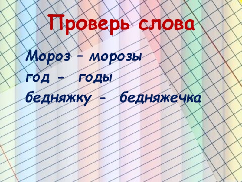 Проверь словаМороз – морозыгод - годыбедняжку - бедняжечка