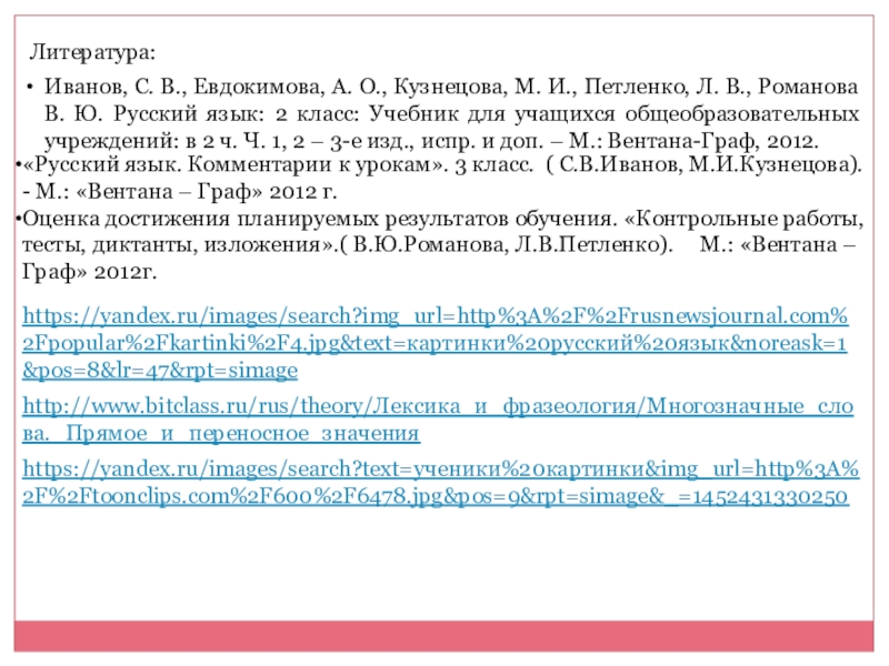 «Русский язык. Комментарии к урокам». 3 класс. ( С.В.Иванов, М.И.Кузнецова). - М.: «Вентана – Граф» 2012 г.