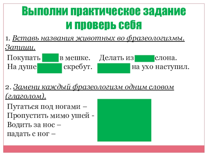 2. Замени каждый фразеологизм одним словом (глаголом).