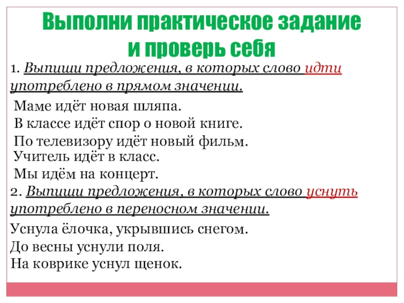 2. Выпиши предложения, в которых слово уснуть употреблено в переносном значении.