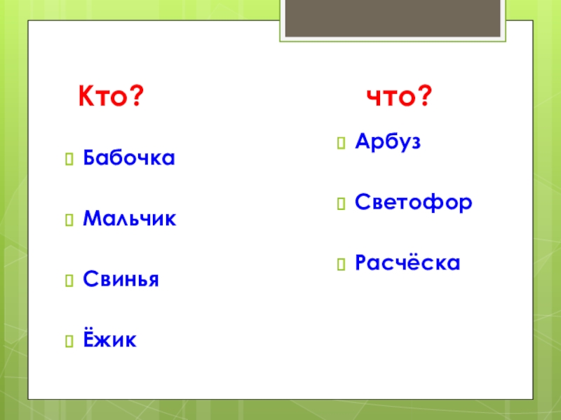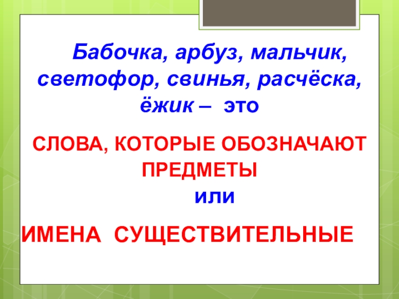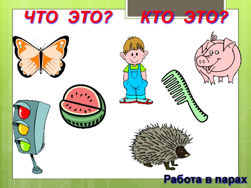 Слайд 10 Бабочка, арбуз, мальчик, светофор, свинья, расчёска, ёжик – это