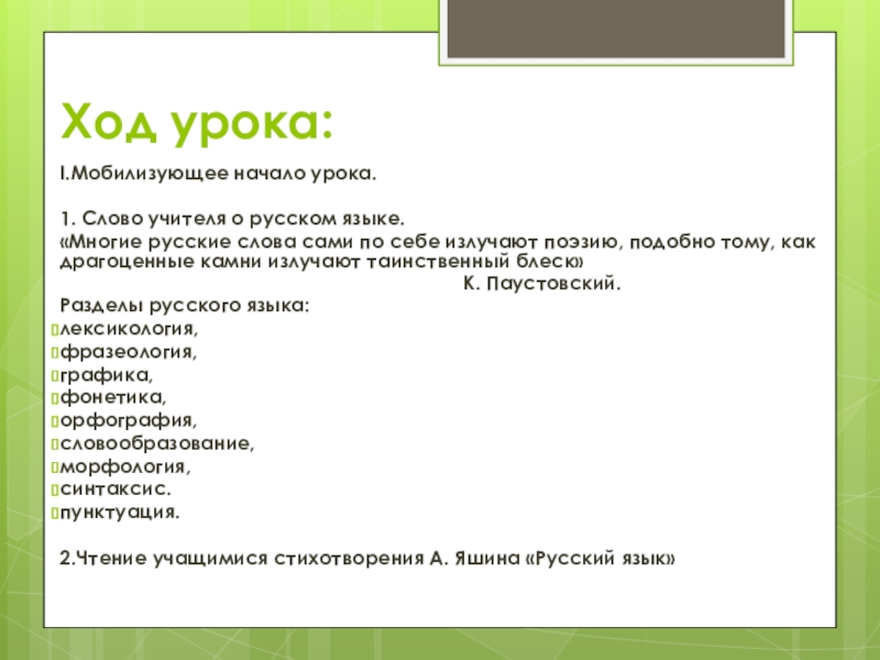 2.Чтение учащимися стихотворения А. Яшина «Русский язык»