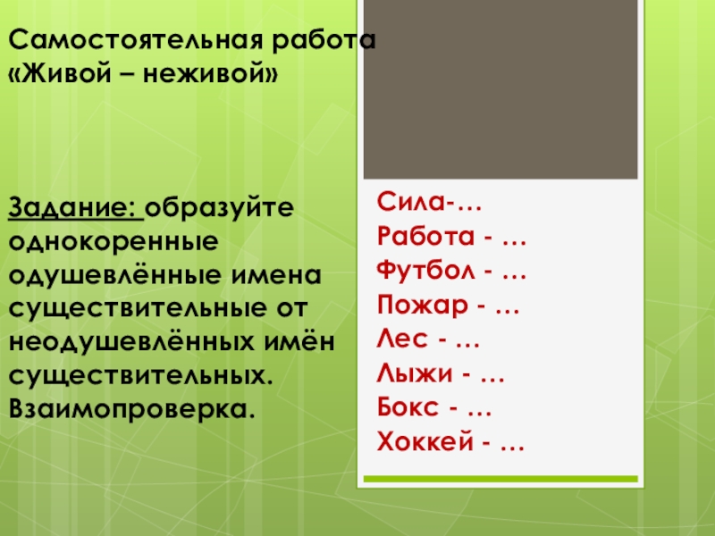 Слайд 23Самостоятельная работа «Живой – неживой»